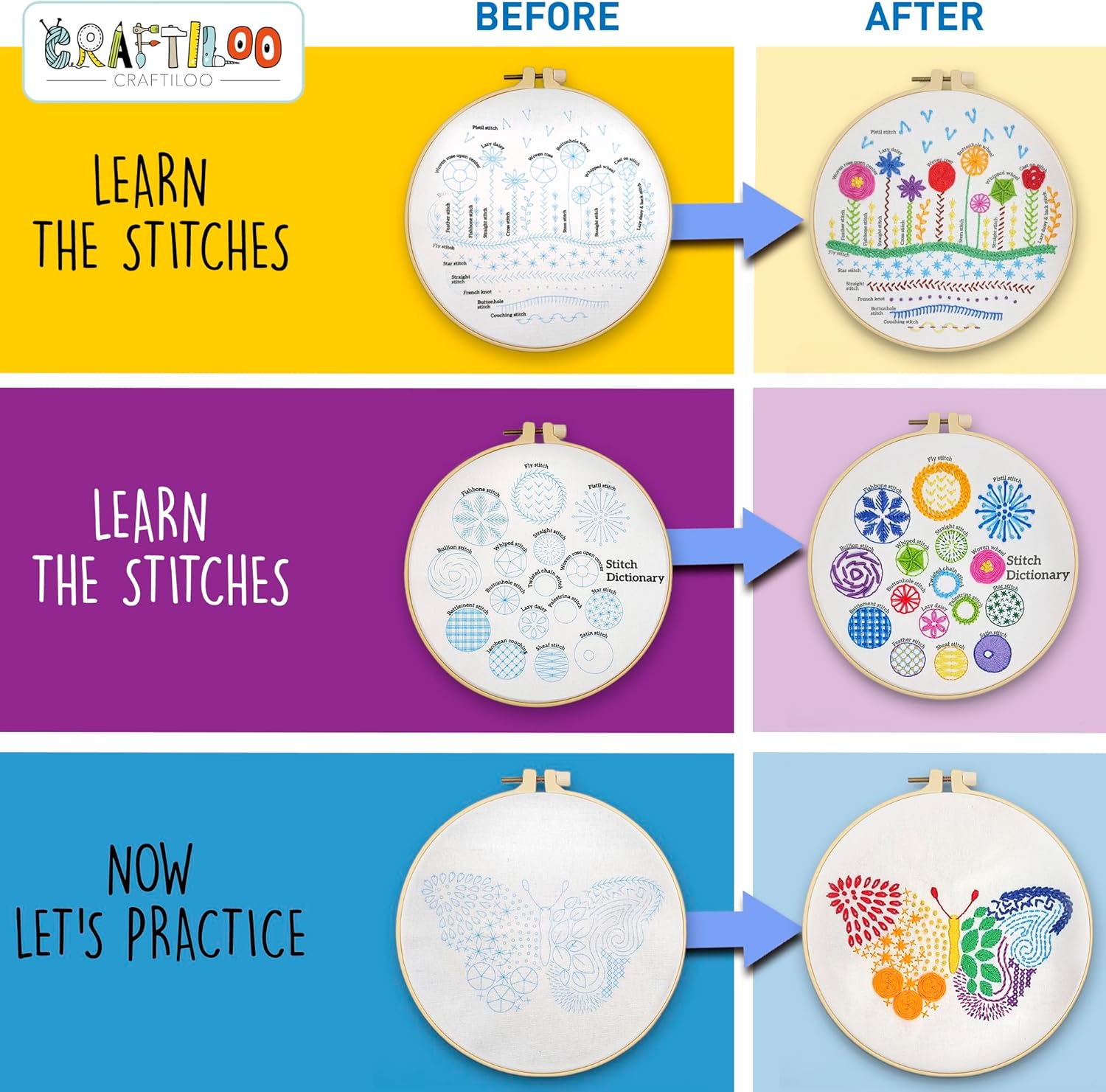 [DETAILED STEP BY STEP ENGLISH BOOKLET] with our beginner embroidery kit it's easy to learn 30 stitches by using our detailed 18 pages booklet especially designed and illustrated for understanding how to sew the stitches