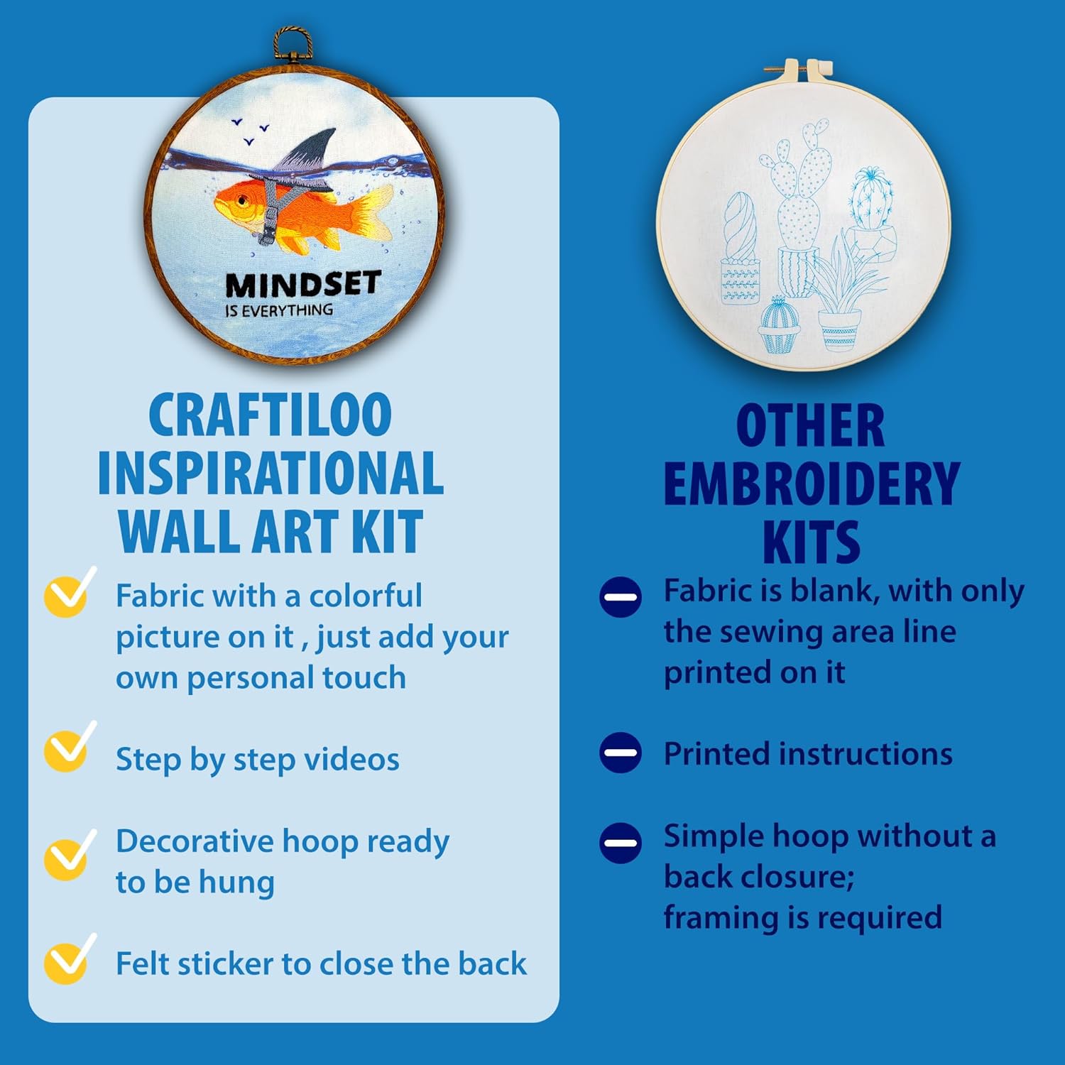 A SPECIAL GIFT SPENDING TIME TOGETHER] Enjoy sewing the hand embroidery kit. A Great gift for craft lovers. With our embroidery kit for beginners your daughter, granddaughter, niece will learn embroidery skills and make a handmade artistic , motivational wall art decoration.