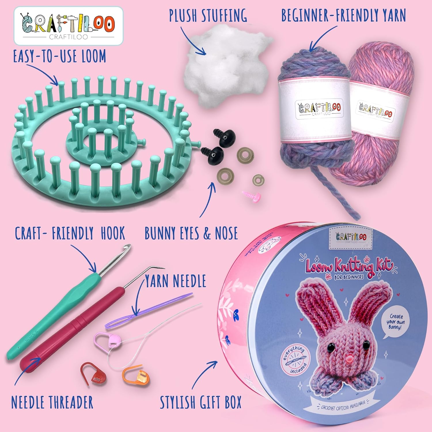 Bunny Loom Knitting & Crochet Kit – Beginner Craft Set for Kids & Adults