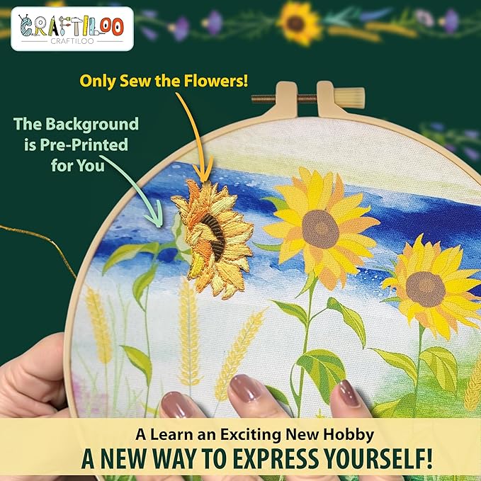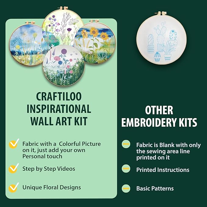 - [OFF-SCREEN OPPORTUNITY CREATING ART] Our beginner embroidery kits are perfect for discovering the joy of sewing craft projects & spending time in an artistic way. Learn to stitch and sew beautiful floral pattern projects.