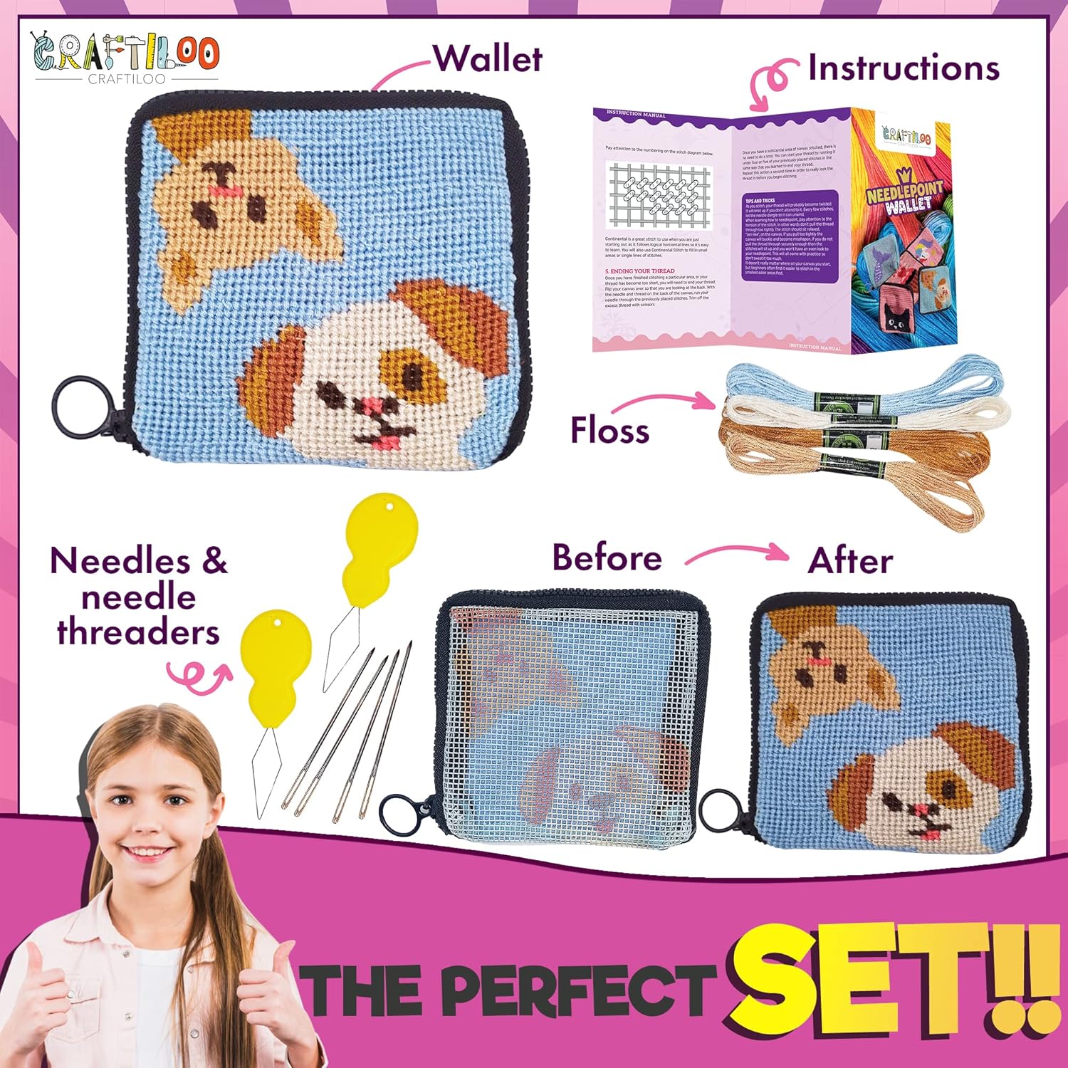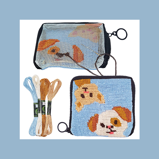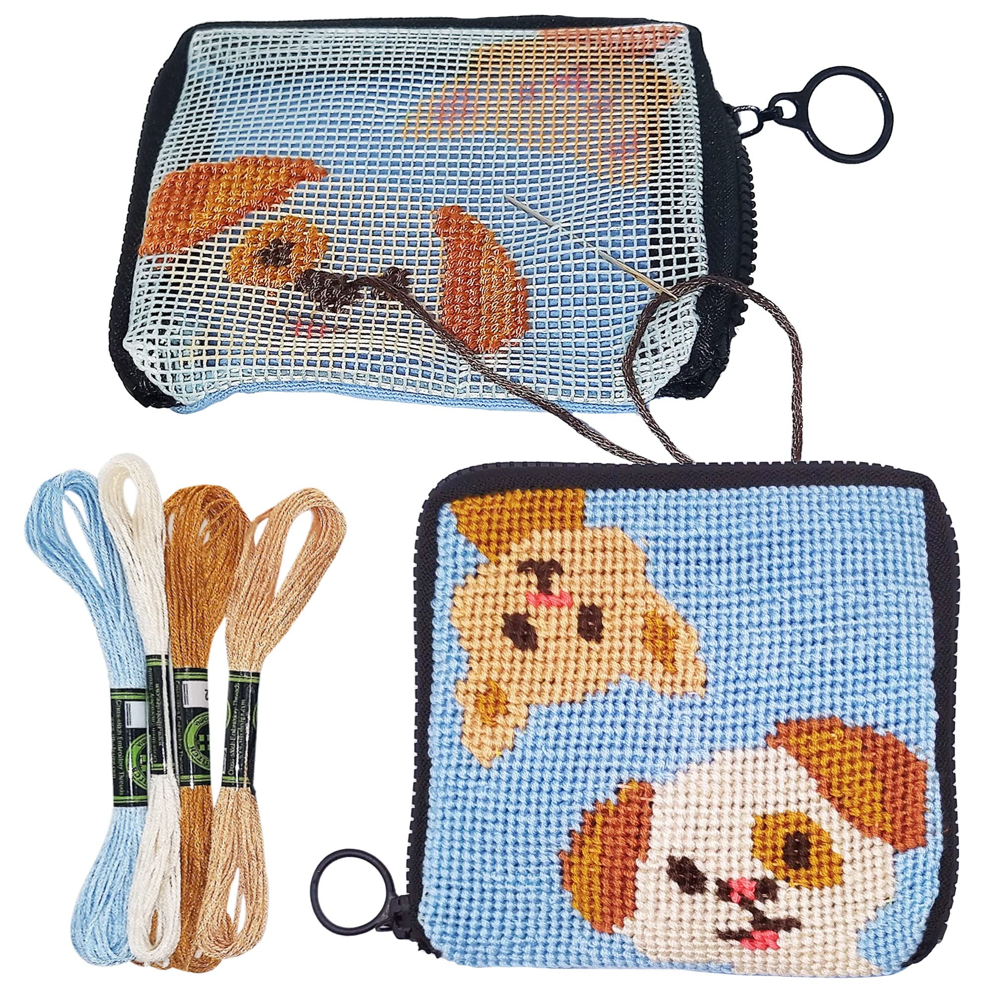 Pre-Printed Needlepoint Wallet Kit – Cat & Dog Sewing Set for Kids