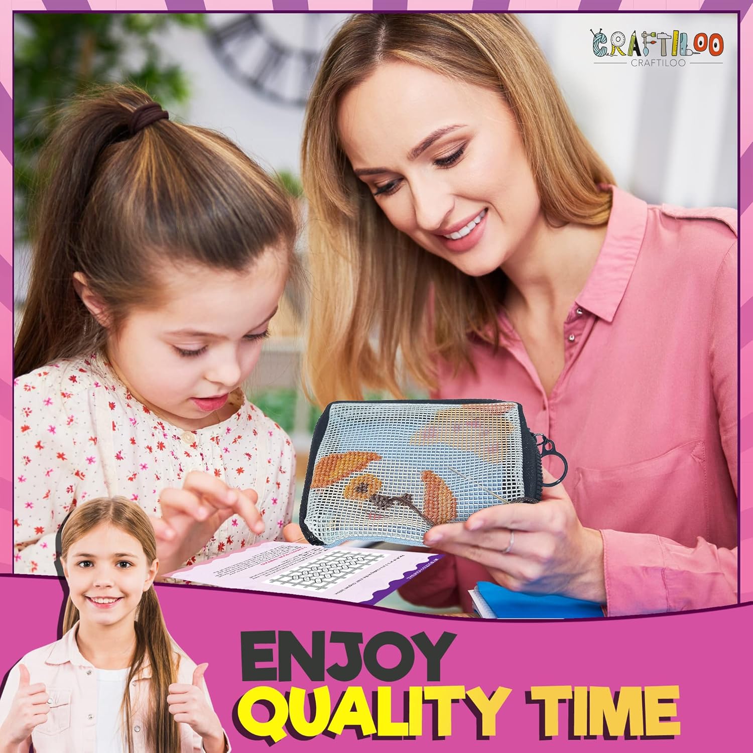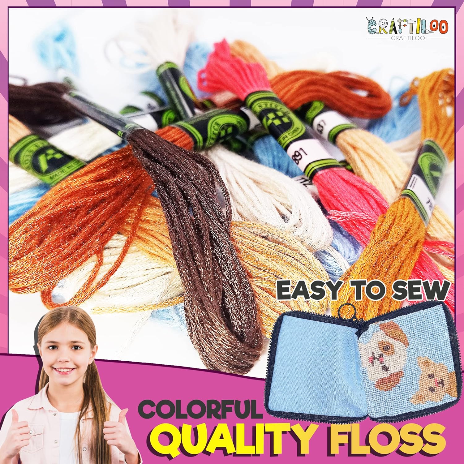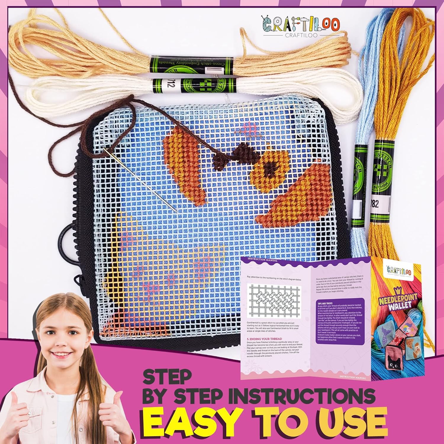 Pre-Printed Needlepoint Wallet Kit – Cat & Dog Sewing Set for Kids