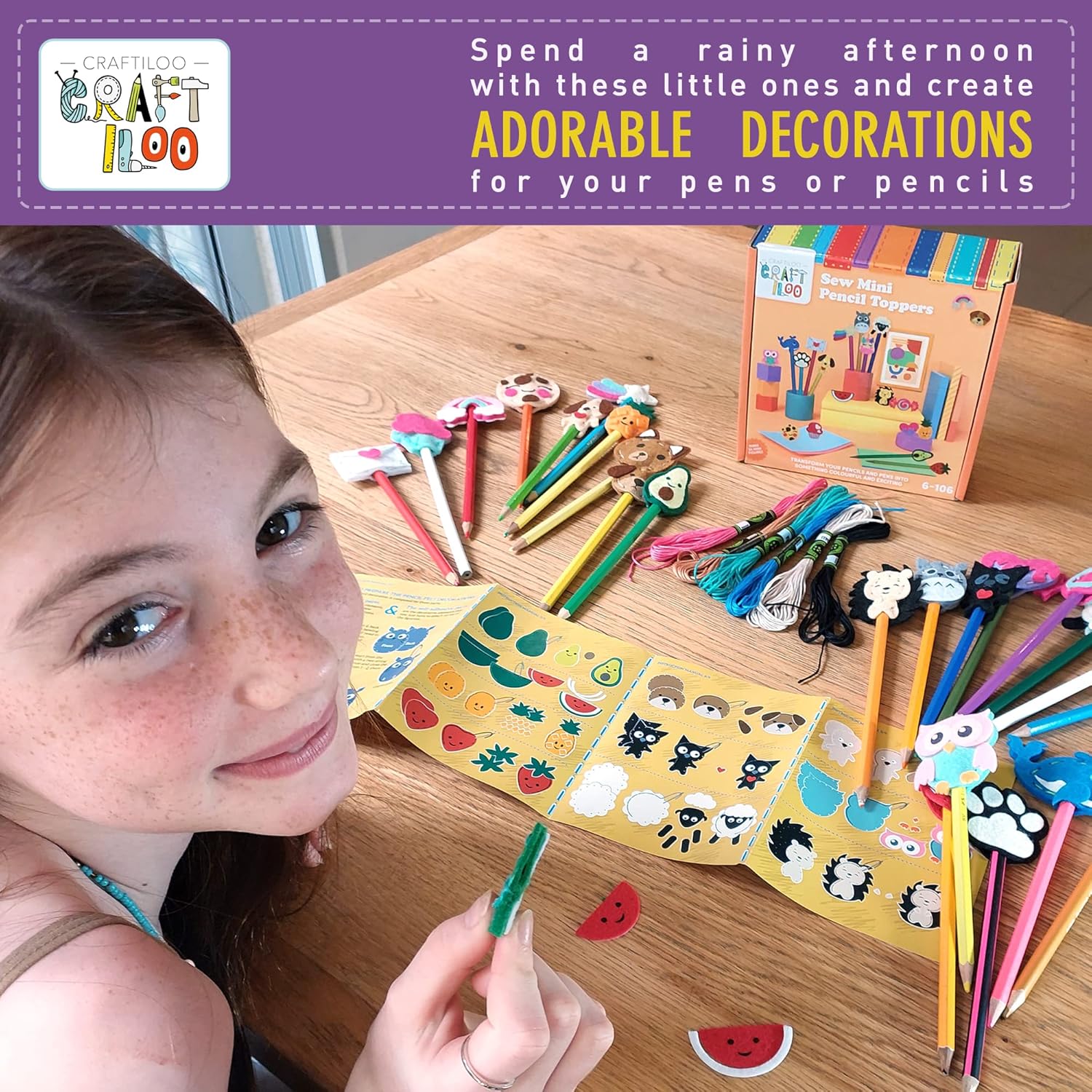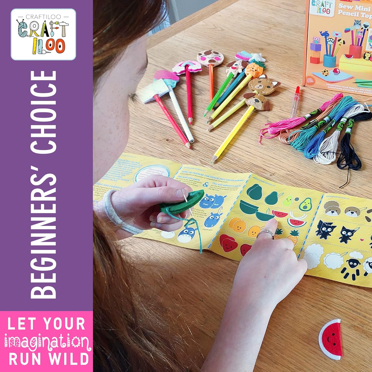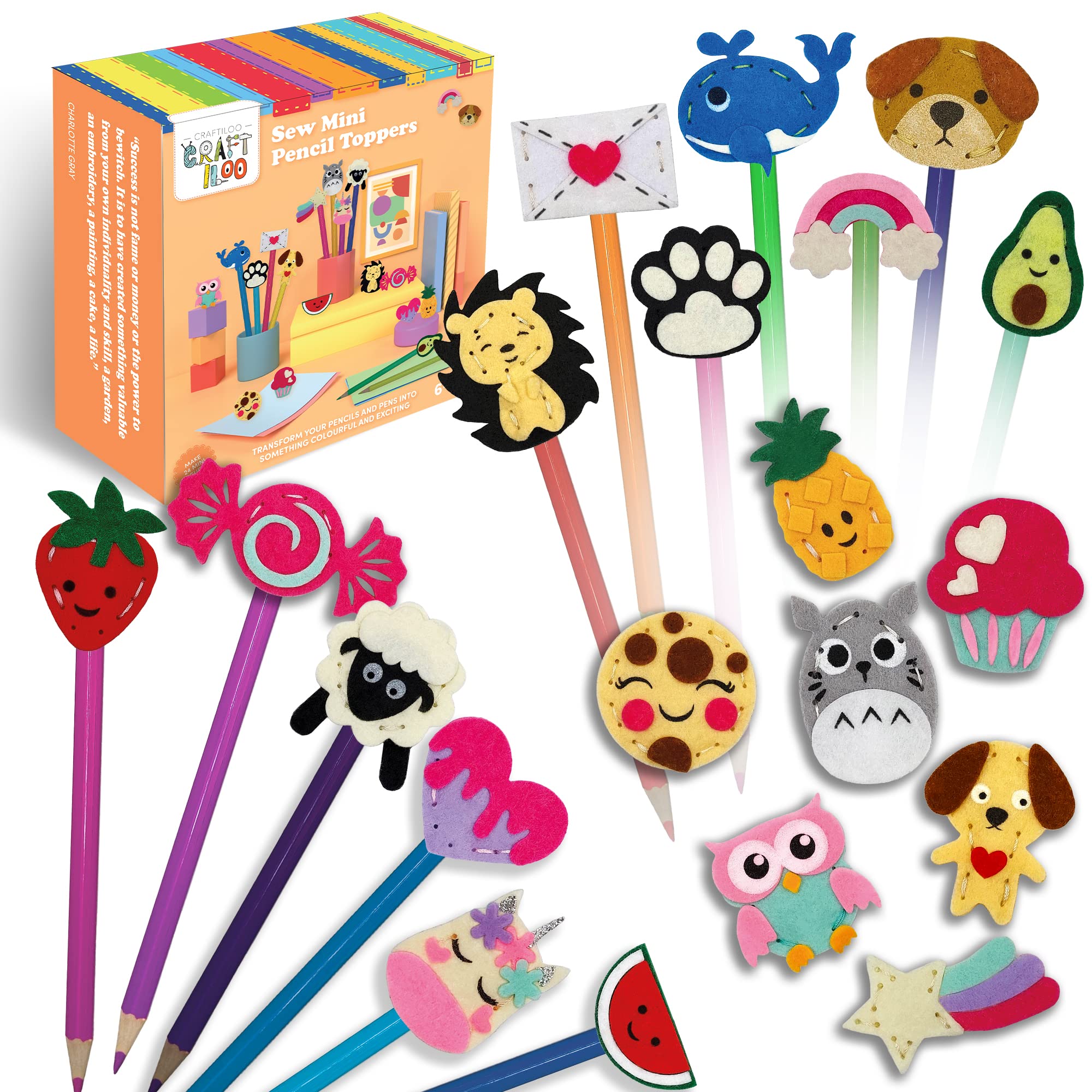24 Pre-Cut Mini Pencil Toppers – Fun Sewing Kit for Kids (Ages 8-12)
