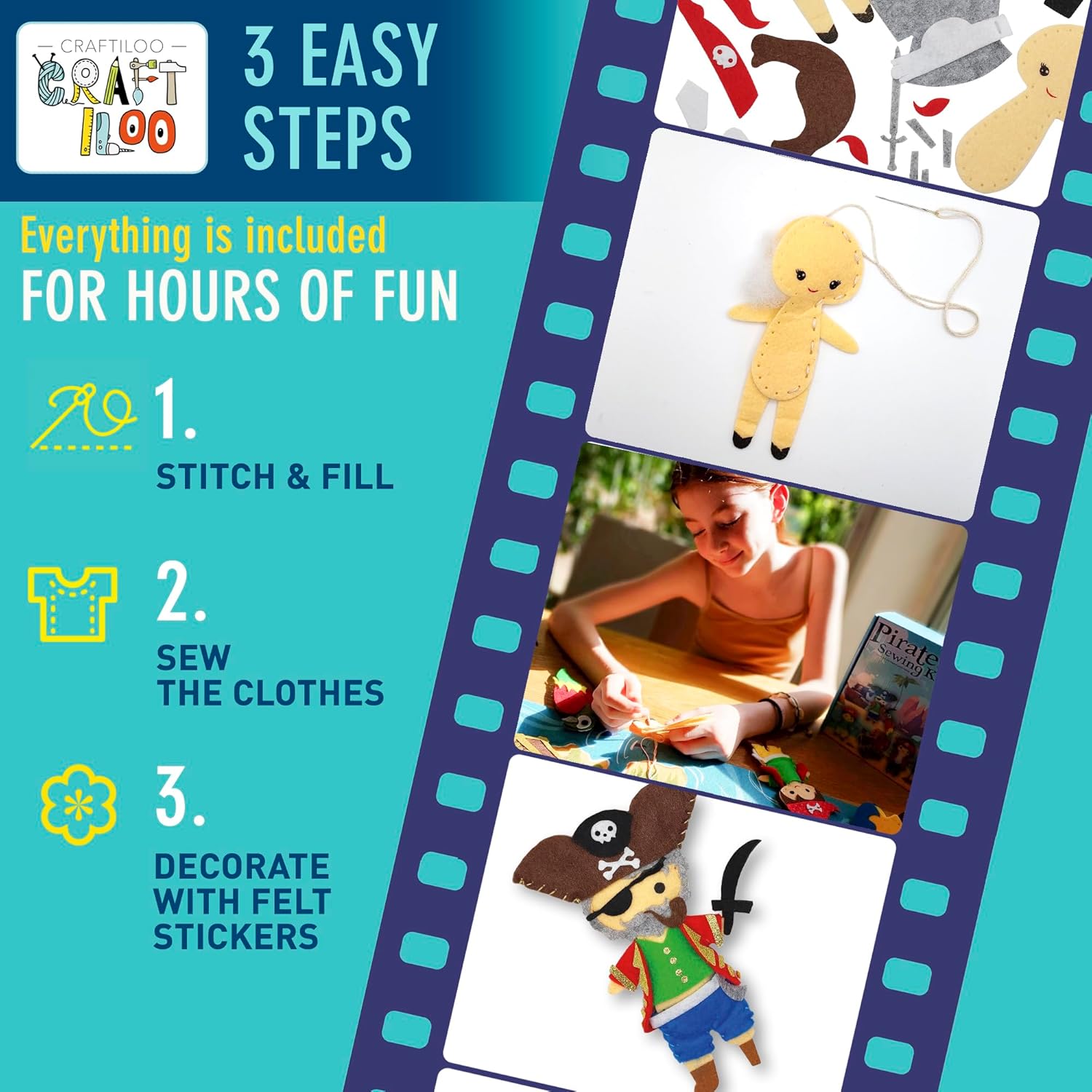 Pirate Sewing Kit for Kids – Pre-Cut Felt Craft Set (Ages 8-12)