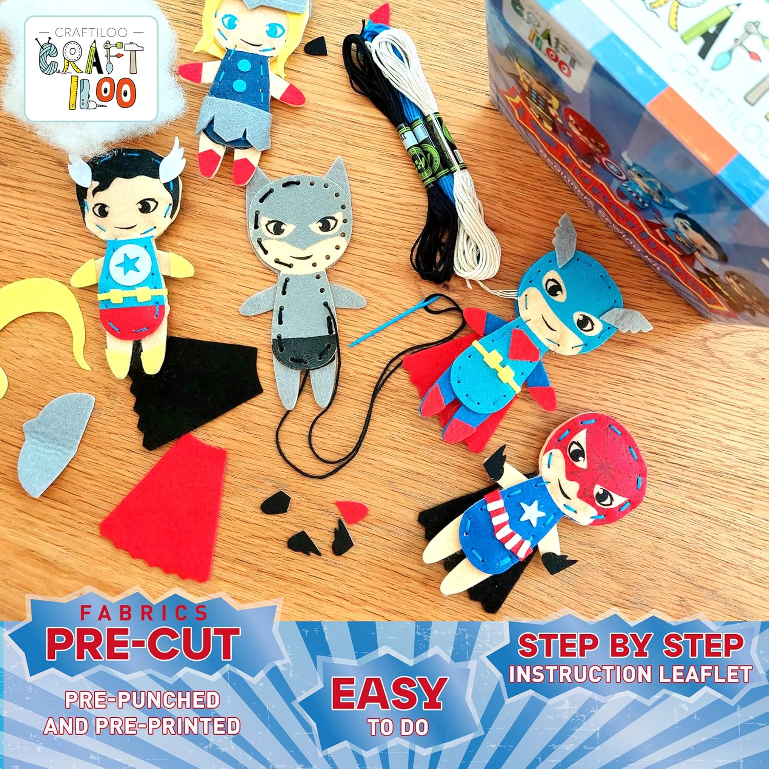 SUPERHERO CRAFT KITS FOR KIDS: Encourage creativity and promote fine motor skills in kids with this beginner sewing kit featuring Superhero figures. These plush crafts for kids make a wonderful activity during small slumber parties, playdates, or birthdays.
