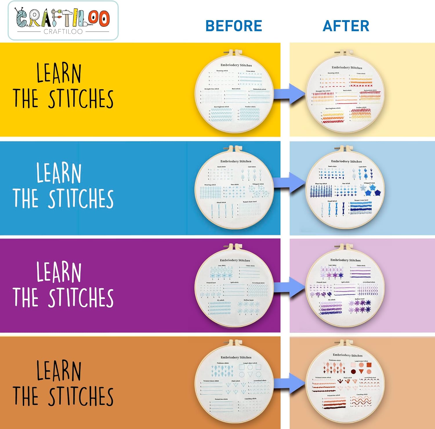 [DETAILED STEP BY STEP ENGLISH BOOKLET] with our beginner embroidery kit it's easy to learn 30 stitches by using our detailed 18 pages booklet especially designed and illustrated for understanding how to sew the stitches