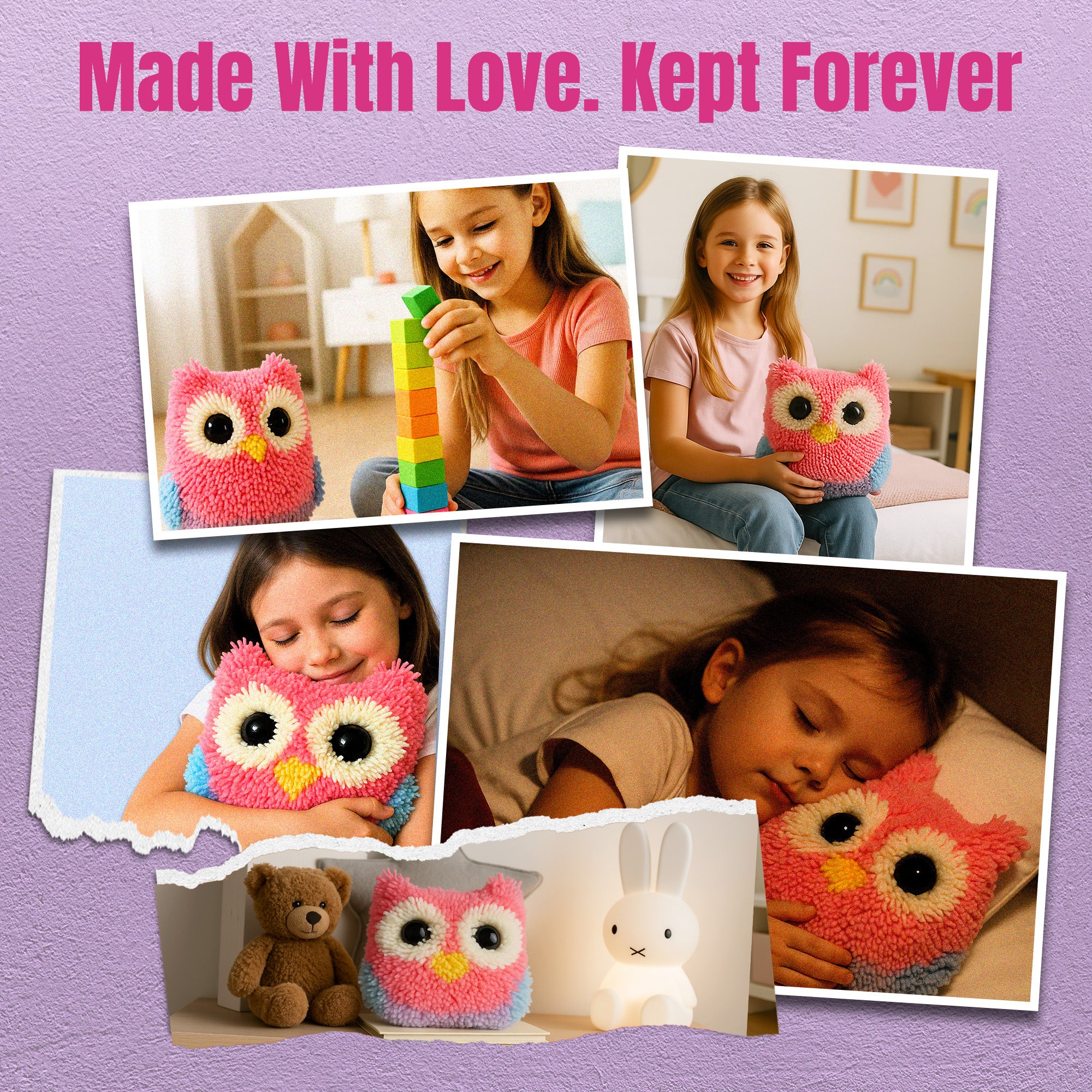 - Whimsical Designs Kids Love to Show Off Whether it's a rainbow heart, a googly-eyed heart, or a wise little owl-these playful latch hook kits for kids turn into pillows they'll be proud to display in their room or share with friends.